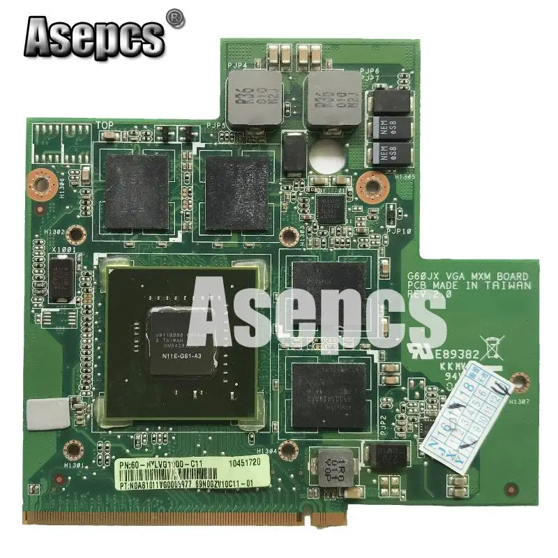 - Product name : Asepcs High quality For Asus G60JX VGA CARD Graphic Card N11E-GS1-A3 GTS360M GTX 360M 1GB 100% Test