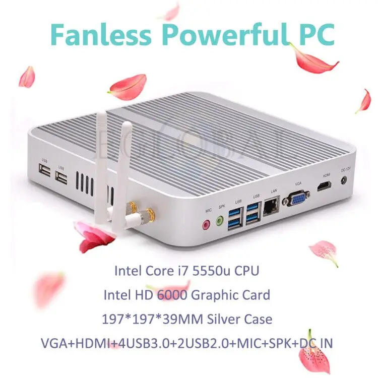 - Product name : Fanless Mini PC Windows 10 Desktop Computer Nettop barebone system TV box Core i7 5550U HTPC HD6000